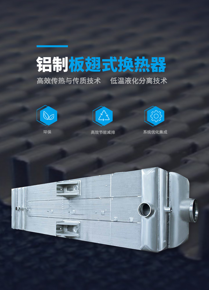公司主營大型鋁制板翅式換熱器的開發、設計、制造和技術服務,公司核心產品為鋁制板翅式換熱器。
